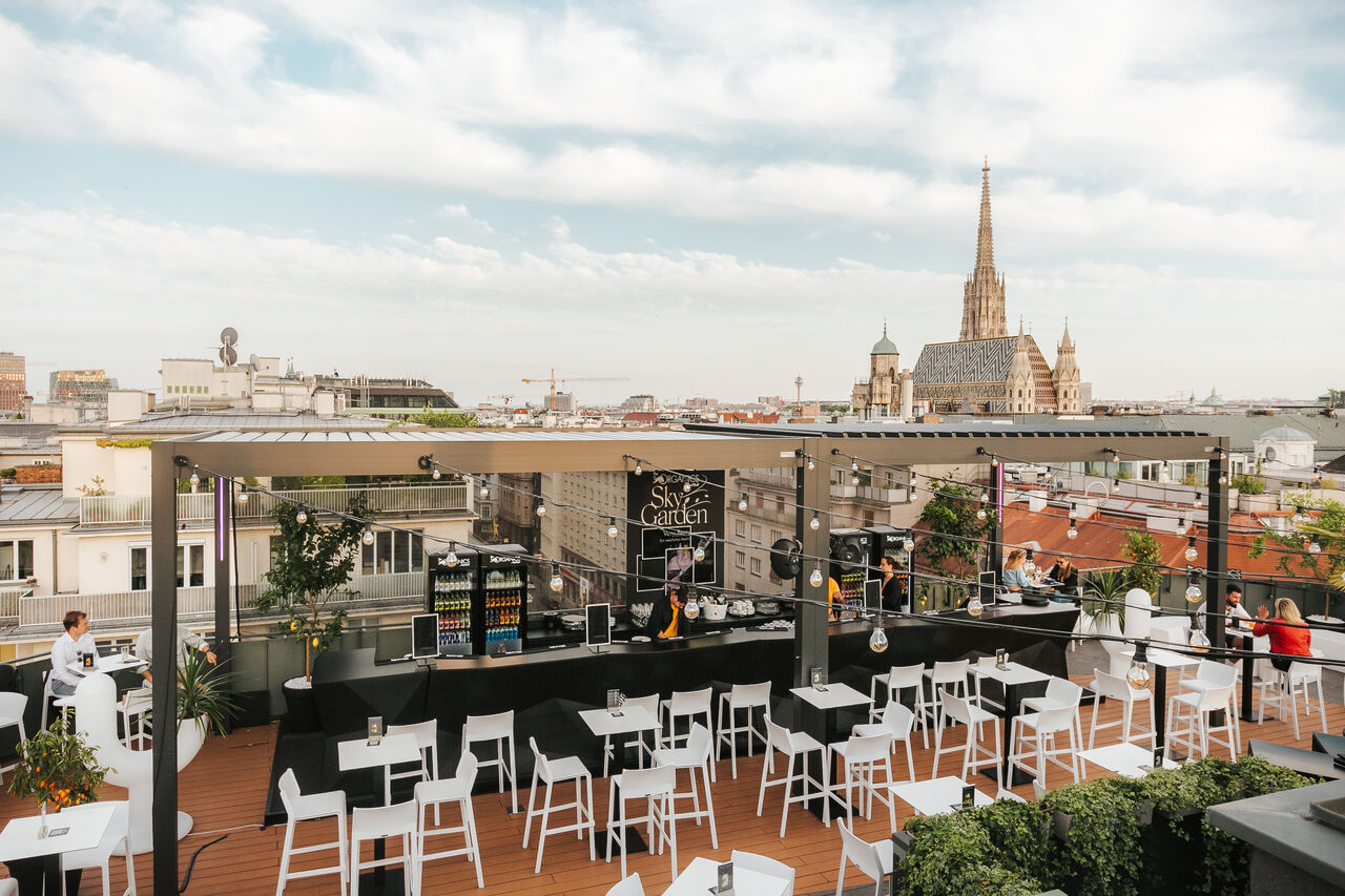 Relaxe in atemberaubenden Designmöbel auf Wien’s schönstem Dachgarten, finde deinen persönlichen Chill-out Spot und probiere dich gemeinsam mit deinen Freundinnen und Freunden durch unsere Getränkekreationen aus natürlichen Zutaten.